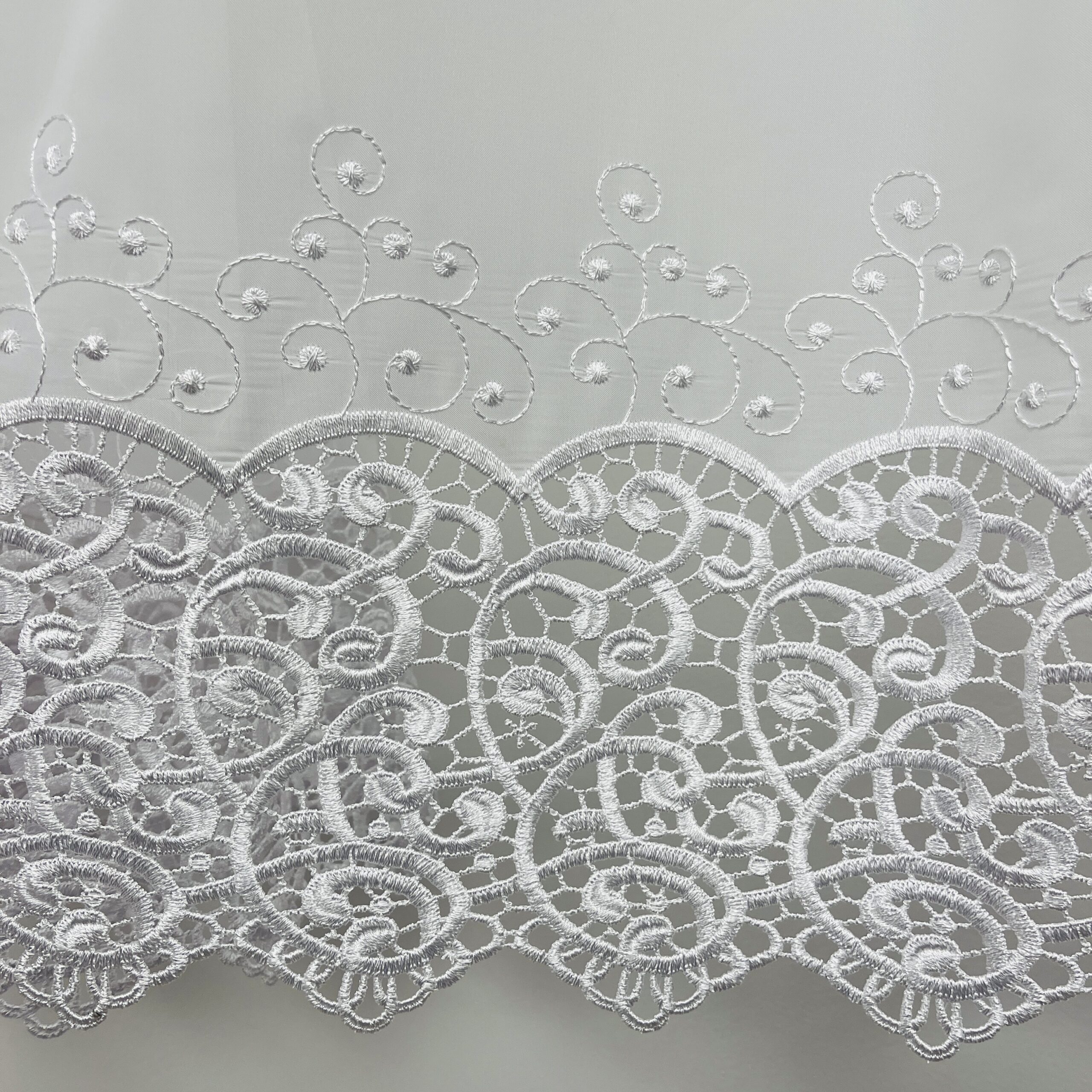 Aplikacja na woalu, jednopasowa, biała. Klasyczny wzór.