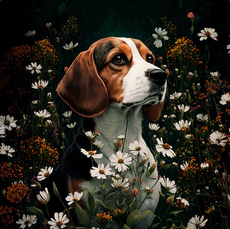 Poduszka welurowa BEAGLE W KWIATACH 02 50x50cm