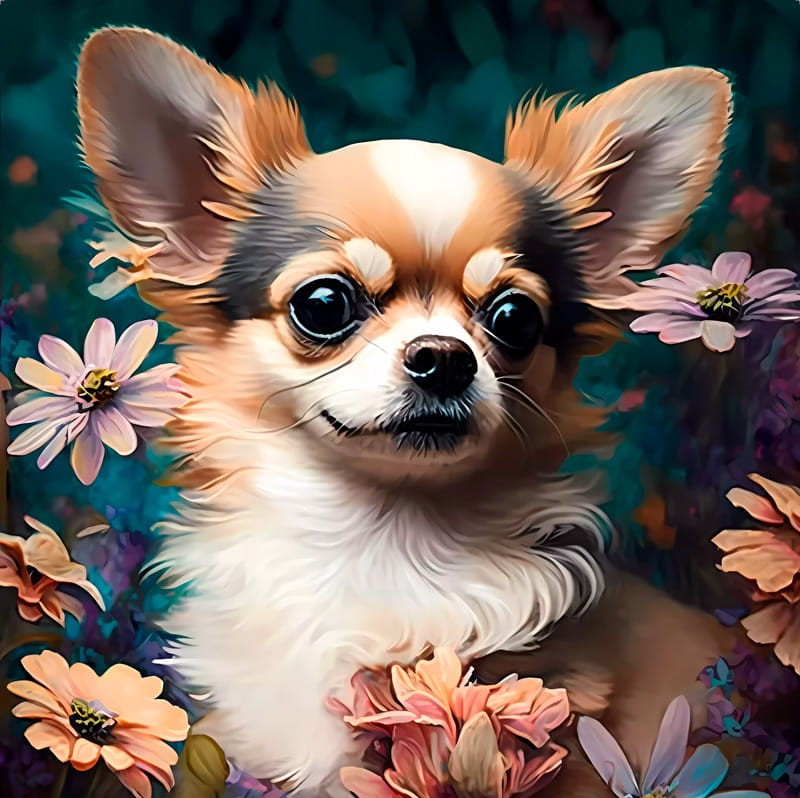 Poduszka welurowa CHIHUAHUA W KWIATACH 50x50cm