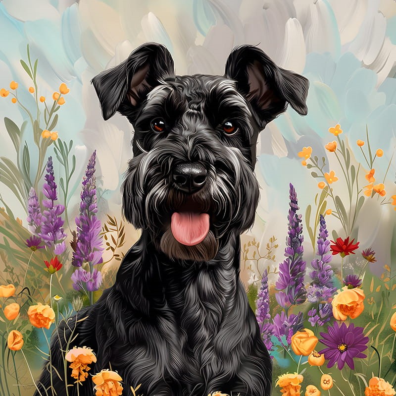 Poduszka welurowa SZNAUCER W KWIATACH 01 50x50cm