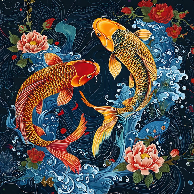 Poszewka welurowa 50×50 cm MALOWANE RYBY KOI