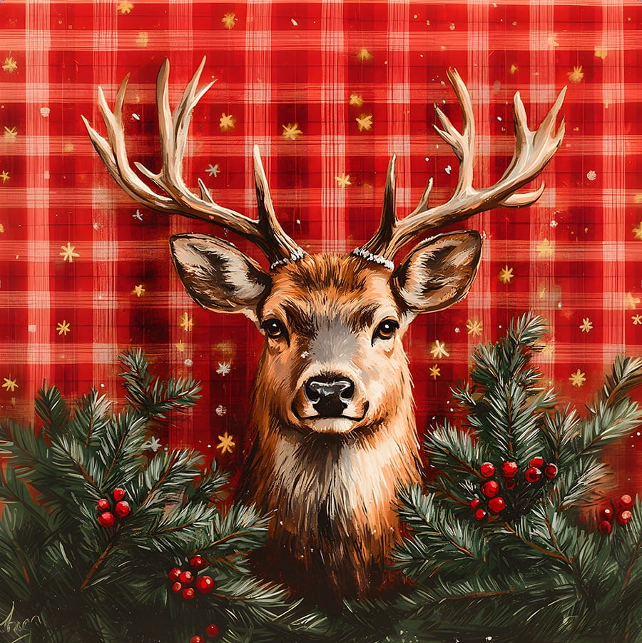 Poszewka welurowa JELEŃ NA CZERWONEJ KRATCE 50×50 cm