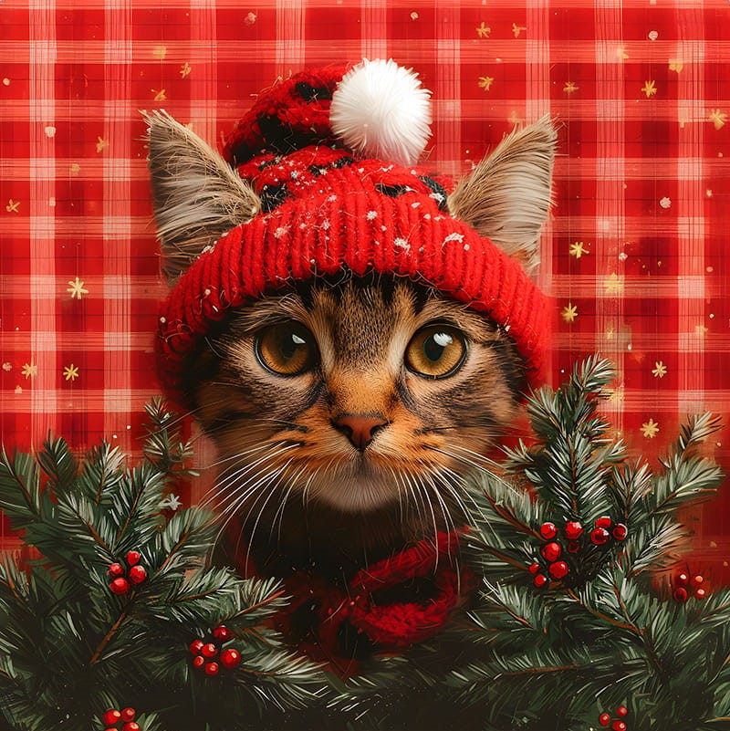 Poszewka welurowa KOT NA CZERWONEJ KRATCE 50×50 cm
