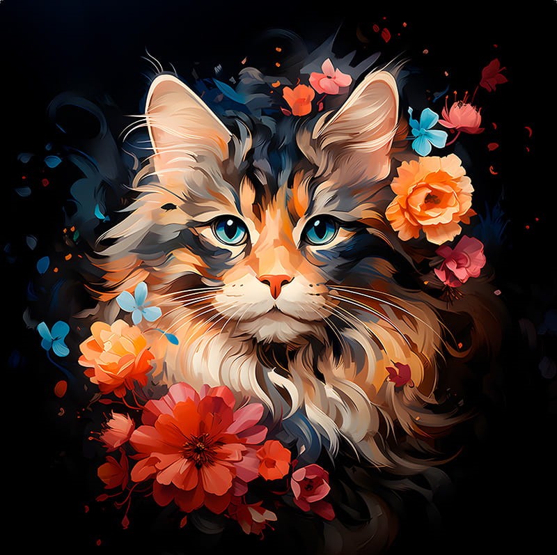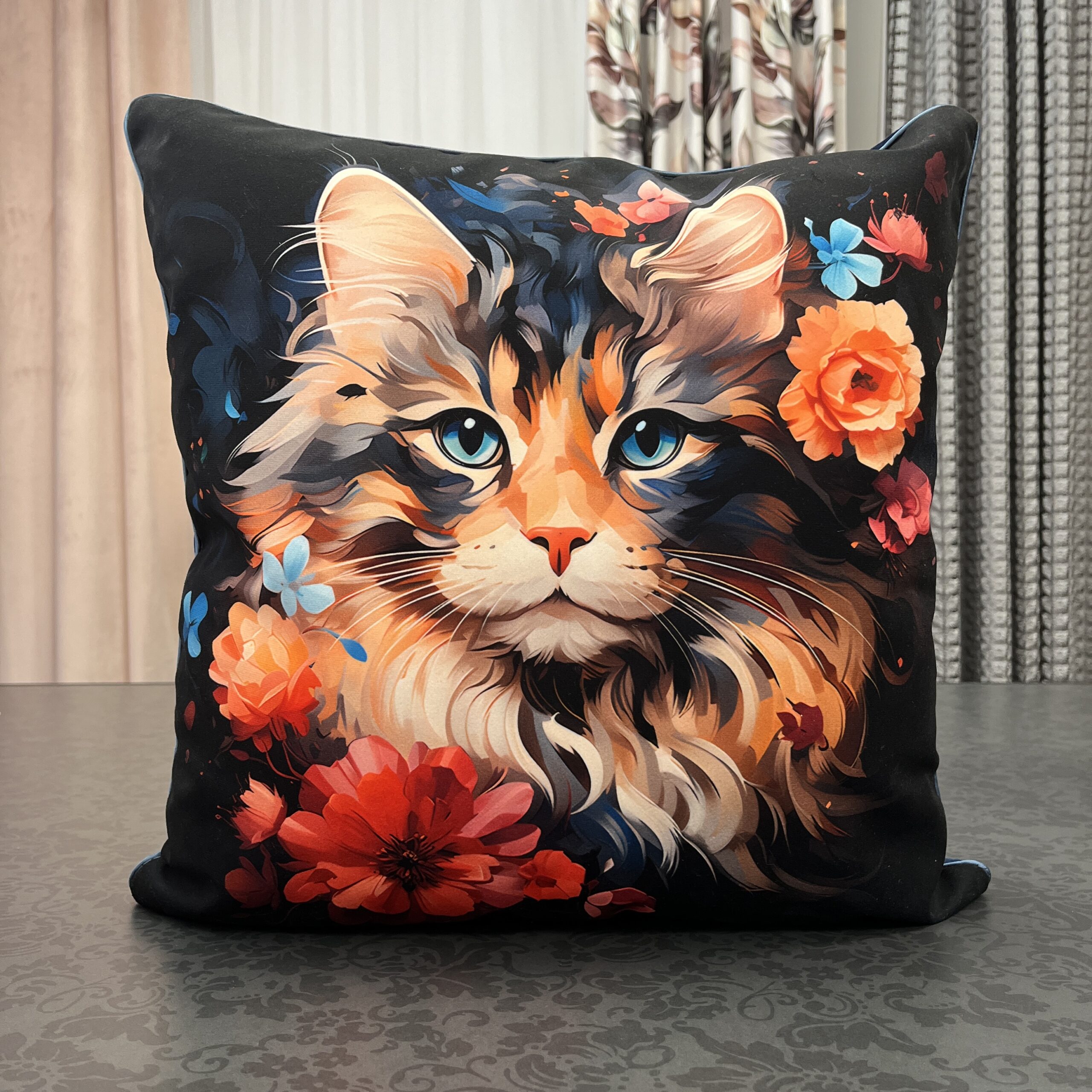 Poszewka welurowa KOT W KWIATACH 50x50cm