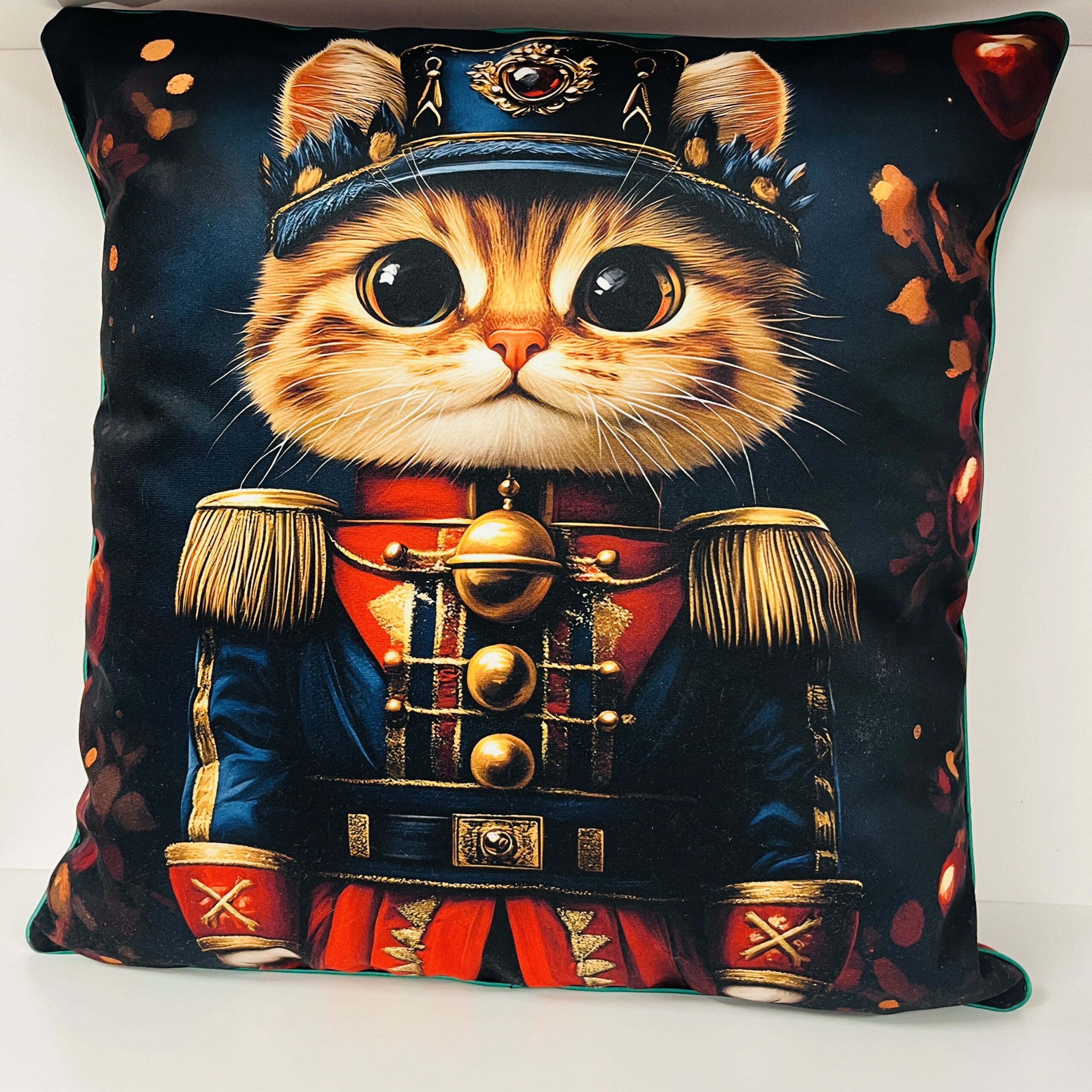 Poszewka welurowa ŚWIĄTECZNY KOTEK 50×50 cm