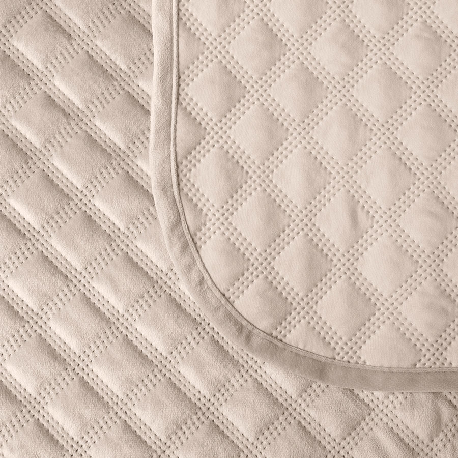 Welurowa narzuta pikowana 220×240 cm – ciemny kremowy