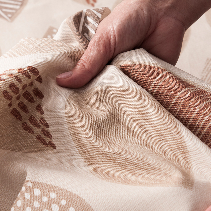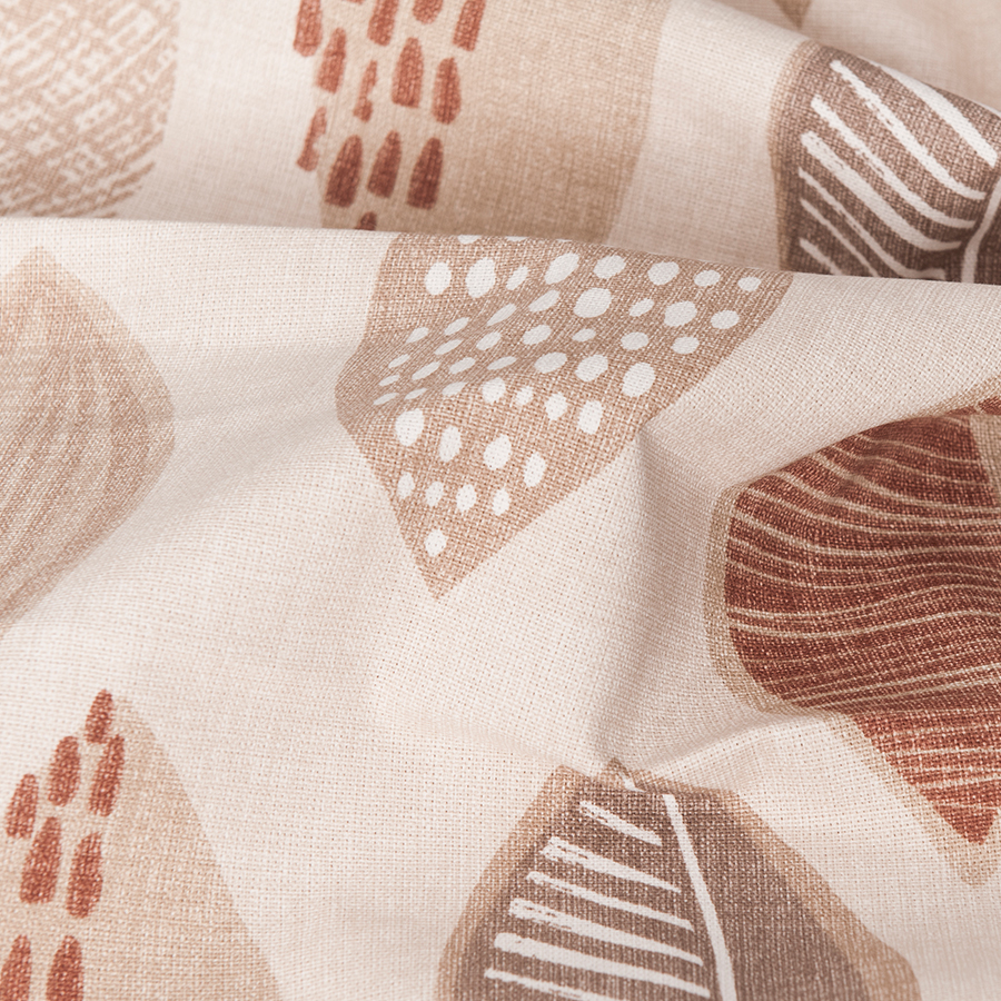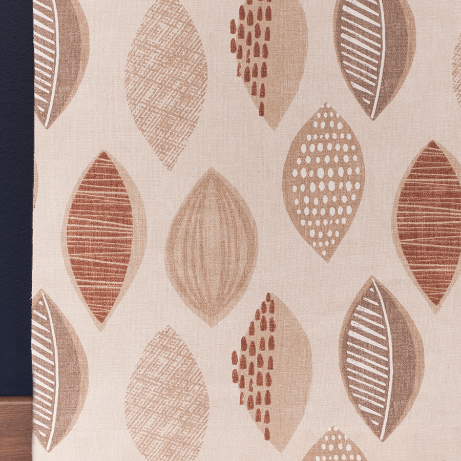 Jeżeli jesteś fanem wzorów lat 60-tych to te zasłony są dla ciebie. Bawełniane zasłony z nadrukiem. Tło w kolorze naturalnym wzór w odcieniach brązu. Bardzo ładna kompozycja przypominająca kształt liści. Świetnie nadaje się do mieszkań w stylu boho. Tkanina zasłaniająca, dobrze układa się na oknie.
